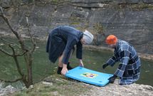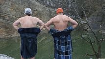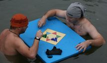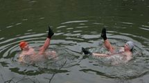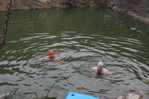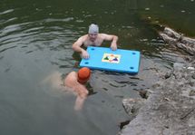 Tak voda měla 5.1 stupňů. Celá naše hra trvala přesně 16 minut. Pak jsme si zaplavali a vylezli ven.